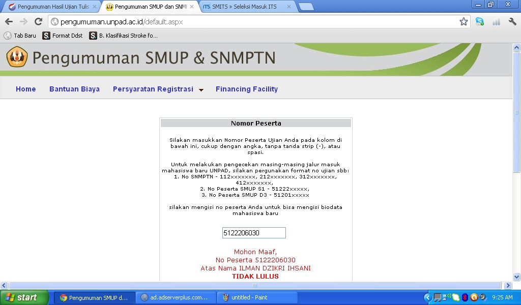 Suasana rumah berubah setelah pengumuman SNMPTN. Mendung menggelayut di atas rumah saya. Optimisme hilang dan semua lebih sedikit bicara apalagi membahas SNMPTN. Waktu saya habiskan di rumah dan lebih banyak tidur, berharap kegagalan ini hanyalah mimpi yang akan lenyap ketika saya bangun nanti. Semua yang saya lakukan di rumah jadi terasa tidak nyaman. Muncul perasaan bersalah karena mengecewakan orang tua. Dalam masa ini terlihat sekali kesedihan Bunda, terutama ketika beliau ditanya saudara atau teman apakah saya lulus SNMPTN. Ayah yang biasanya diam pun kali ini angkat bicara menasehati saya dengan sedikit lebih keras. Kebenaran memang pahit dan mengiris ketika dikatakan. Evaluasi Ayah atas aktivitas saya selama setahun ditambah gambaran saya yang akan tersingkir dalam kehidupan sosial membangkitkan rasa penyesalan yang pedih. Selain SIMAK, saya mengikuti pula beberapa tes mandiri hanya demi mendapat bangku kuliah tahun ini. Seleksi Masuk Universitas Padjadjaran (SMUP), Seleksi Masuk Institut Teknologi Surabaya (SMITS), dan Seleksi Masuk Univ. Pendidikan Indonesia (SM UPI). Hasilnya?
