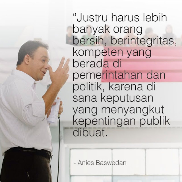Jika ingin benar-benar membuat perubahan, usaha penyelesaian masalah sudah semestinya dimulai dari mencari akar masalahnya untuk kemudian diselesaikan dari penyebab masalah tersebut muncul. Ketika melihat banyaknya masalah pendidikan di negeri ini, tidak bisa hanya dengan mengajak seluruh lapisan masyarakat ambil bagian dari penyelesaian masalah pendidikan. Karena itulah Anies Baswedan tidak berhenti ketika telah berhasil menggagas gerakan Indonesia Mengajar, tetapi turut berpolitik sehingga dapat menjadi Menteri Pendidikan seperti sekarang. Kini, dengan posisinya sebagai pimpinan institusi pendidikan di negeri ini, beliau tentu lebih leluasa mencipta perubahan dan mencerdaskan kehidupan bangsa sebagaimana yang dicita-citakannya dalam gerakan Indonesia Mengajar. Pada kasus lainnya, ketika kita melihat kota tempat kita semrawut, tidak bisa hanya dengan menggagas forum komunitas untuk mengubah infrastruktur kota melalui kreativitas dan perencanaan. Seperti Ridwan Kamil yang tidak berhenti dengan menyumbangkan gagasan untuk Kota Bandung melalui Bandung Creative City Forum, tetapi kemudian berpolitik dan menjadi Walikota Bandung. Sekarang, seperti yang kita ketahui, Ridwan Kamil dengan posisinya terus membenahi infrastruktur Kota Bandung dengan menekankan perencanaan dan kreativitas sebagaimana yang dia cita-citakan.